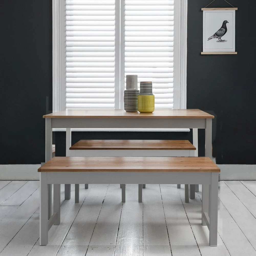 Annika Dining Table With 2 Chairs & 2 Benches In Grey & Pine