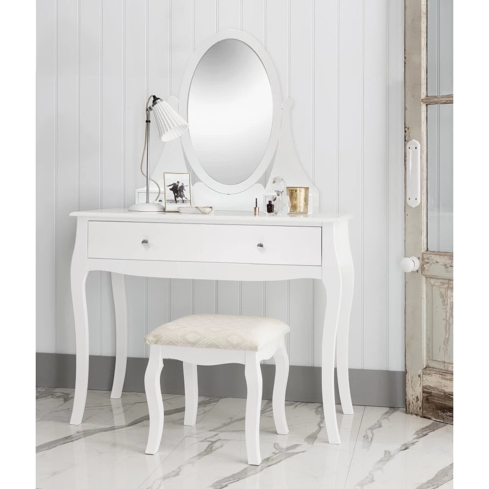 Camille Dressing Table And Stool With Mirror In Classic White