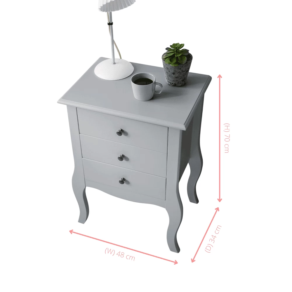 Be the first to review “Camille Side Table Chest 3 Drawer In Silk Grey” Cancel reply