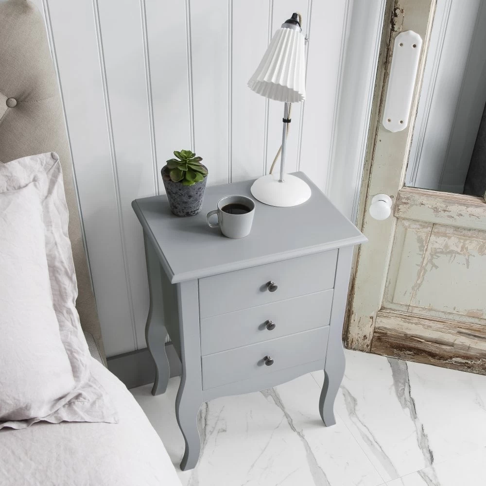 Camille Side Table Chest 3 Drawer In Silk Grey