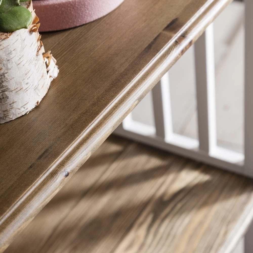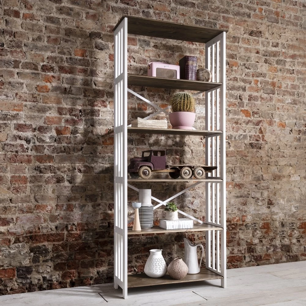 Arising from our much loved Canterbury collection comes this beautiful shelving unit. Wonderfully versatile, the piece can be used as a bookcase or display centre for lounge spaces, hallways, or bedrooms. Comprising of a slatted, white wooden frame and natural pine shelves, the design stylishly fuses modern and rustic elements, making it perfect for both minimal and classic interiors. For an eclectic vibe, adorn with a mixture of accessories such as books, vases, candles, and plants to create a chic, homely feel. Wherever you place this gorgeous piece, it’s sure to create a vibrant focal point in your abode.