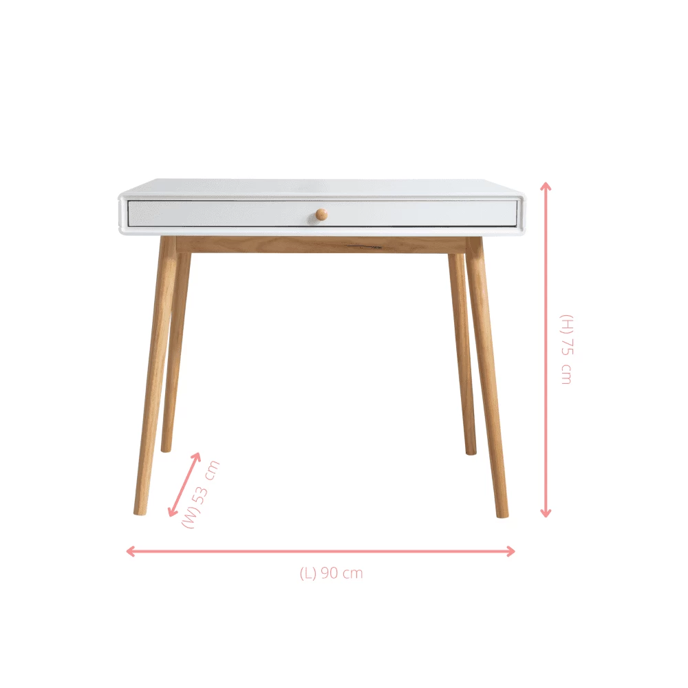 Modernise your workspace with our sleek and contemporary Frank Desk. Simple, neat and ultra-stylish, the desk’s long, slim drawer is handy for laying out notepads, paper, pens and stationery. Natural pine legs introduce a retro element which add a quirky character to the minimal piece. Thanks to its simple styling, the desk sits beautifully in almost any space and transforms any area into an inspirational workspace. Available in blue, dark grey, light grey and white, you’re sure to find a colour to complement your home.