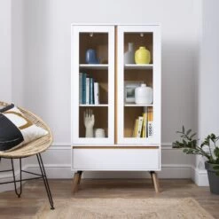 Otto Display Cabinet Dresser In Solid White And Natural Pine