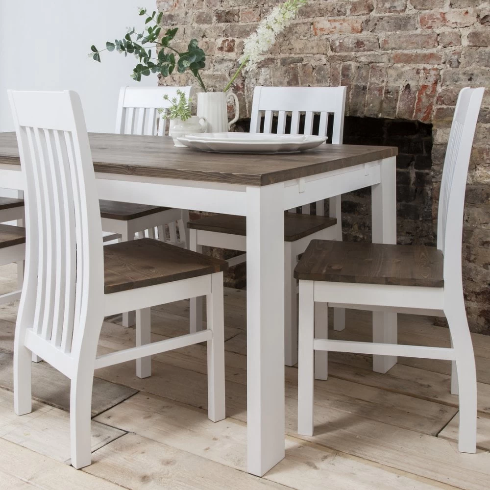 Hever Dining Table With 6 Chairs In White And Dark Pine