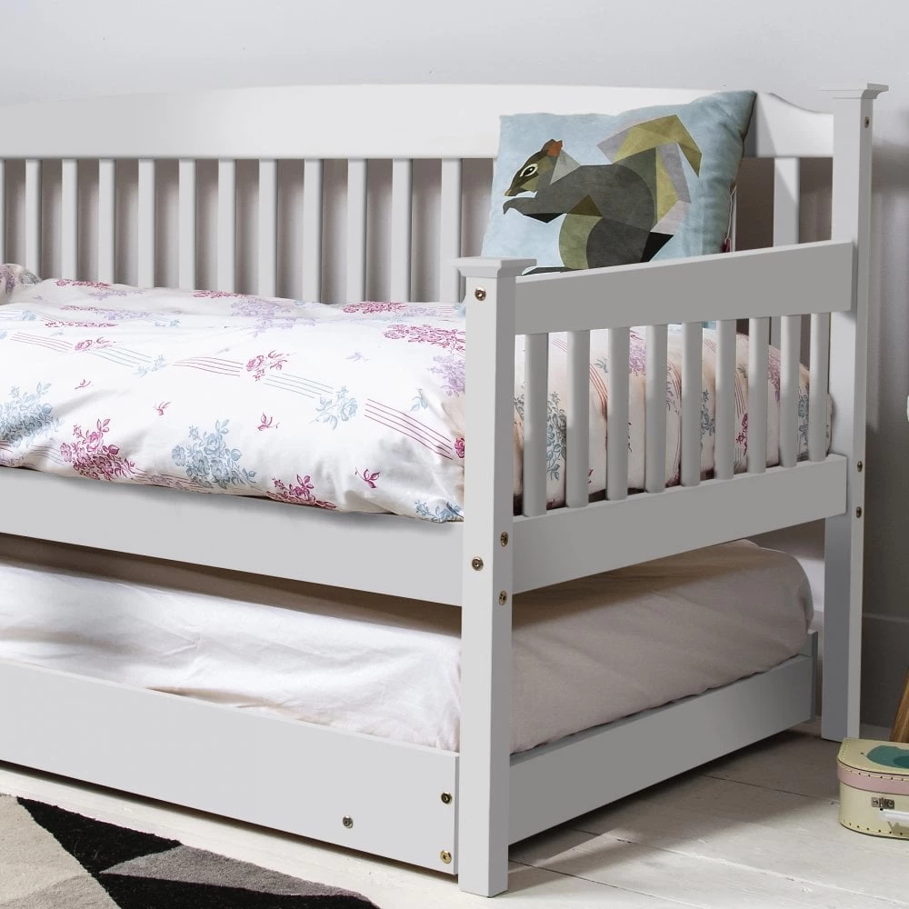 From sofa to sleeping spot, the Isabella Day Bed in White is a magnificently versatile piece. Thanks to a pull-out trundle bed below, the design transforms from settee to slumber space in no time, making it a lifesaver for last-minute sleepovers. An excellent space-saving solution, the daybed will easily fit into small guest rooms where it can the as two beds or a simple sofa. A charming chill-out area when not in use, the sofa bed is ideal for curling up on a comfy cushion and losing yourself in a book.