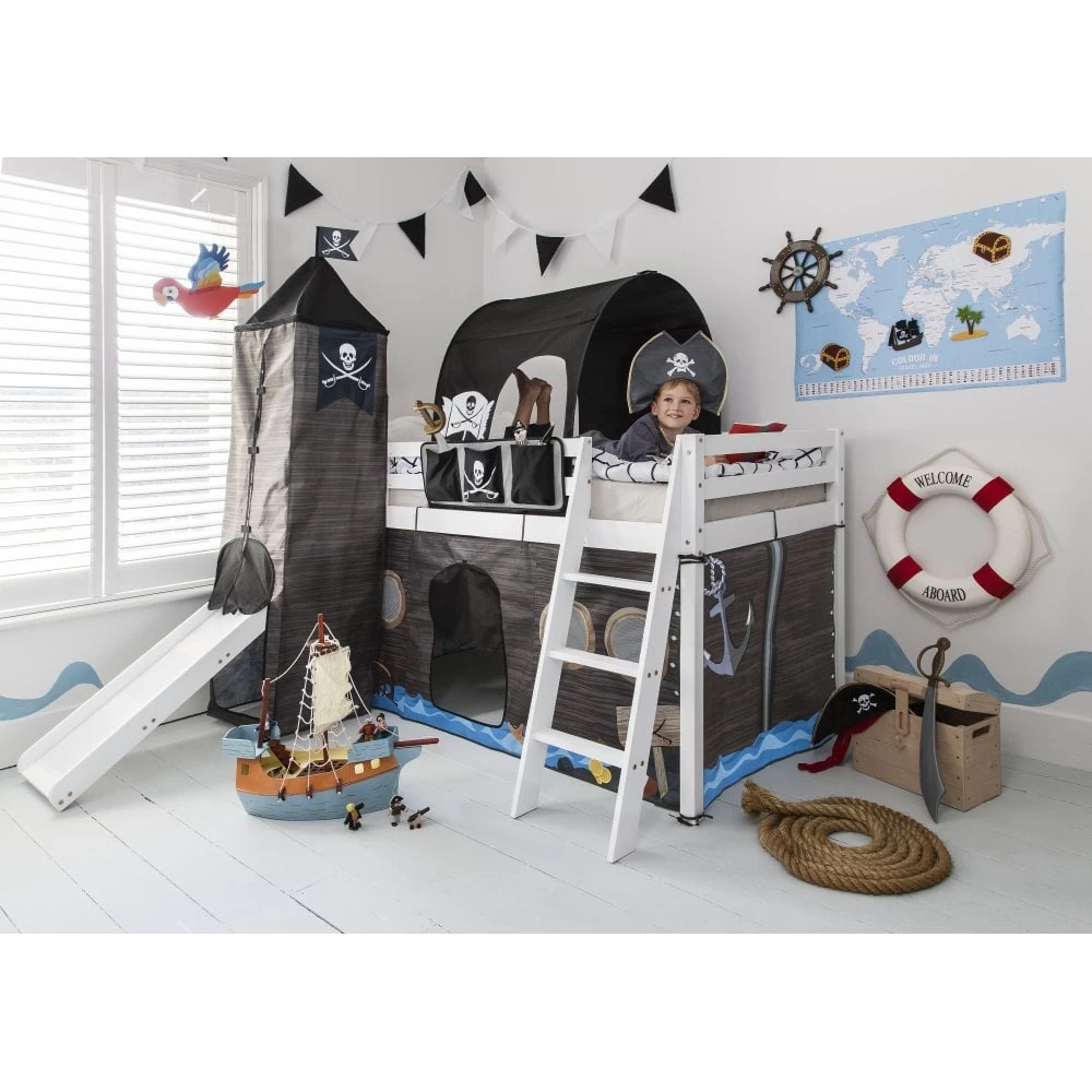 Moro Cabin Bed Midsleeper With Slide & Pirate Hideaway Package In Classic White