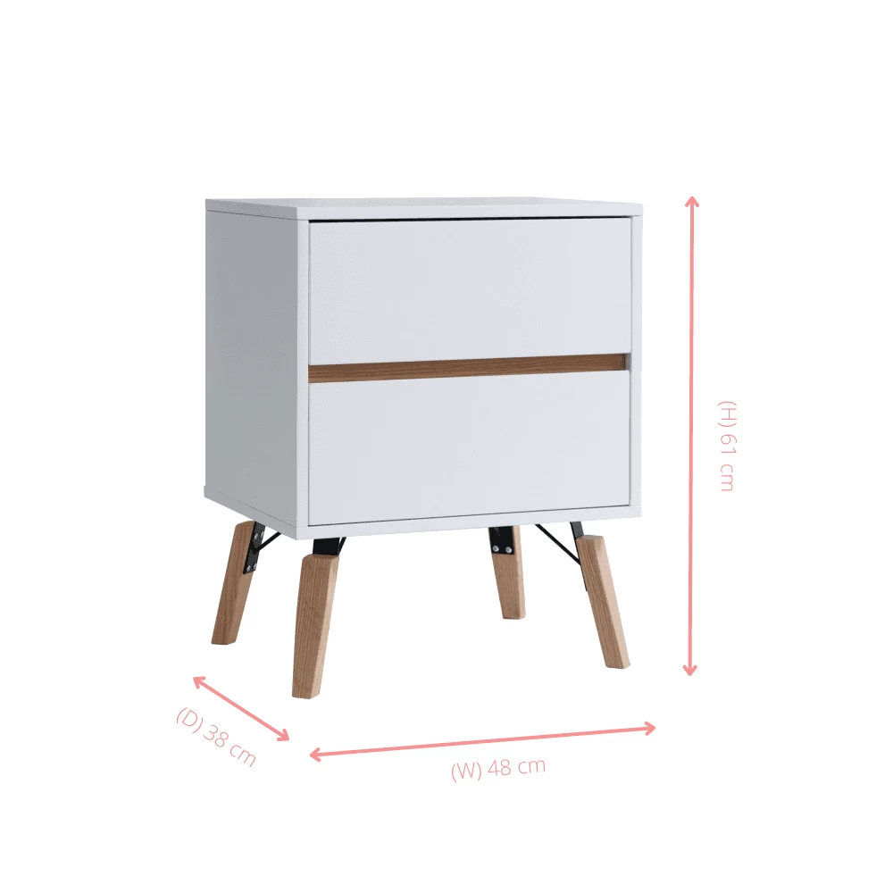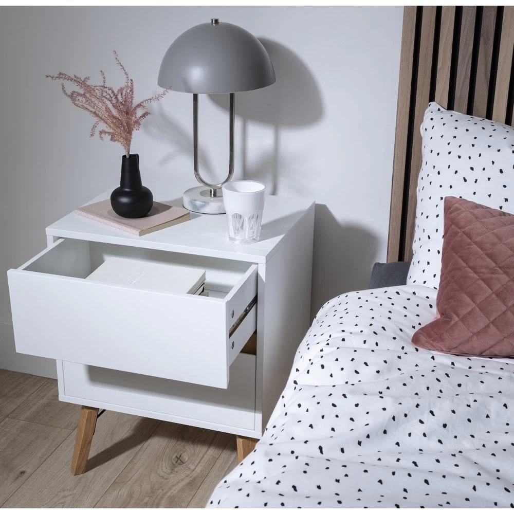 Otto Bedside Table With 2 Drawers In Classic White