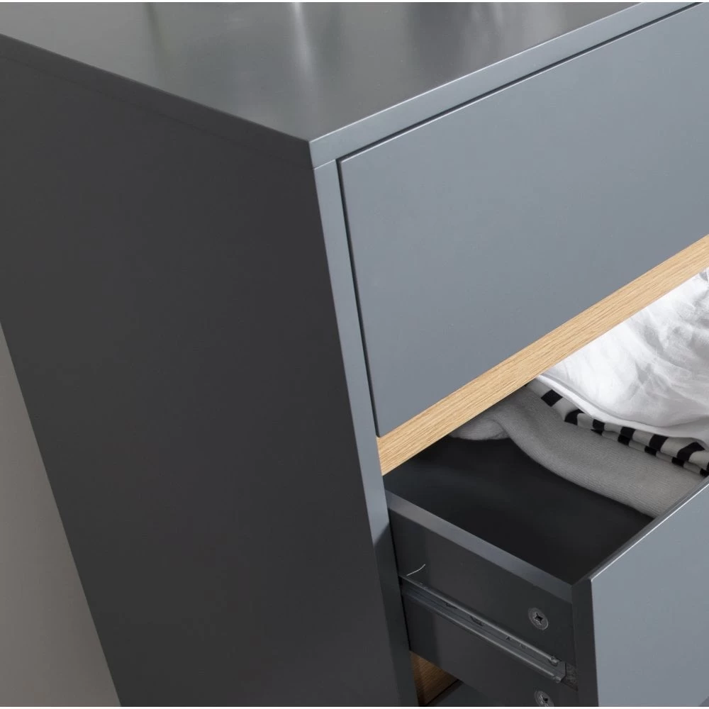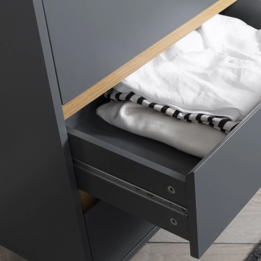 A contemporary design flirting with mid-century modern elements, Otto has a quirky minimalism thing going on. Guaranteed to add character to your boudoir, this wide set of drawers impresses with its clean, grey style and charming retro legs. Stash clothing, undergarments or accessories inside its spacious drawers, which are sure to accommodate all your folded essentials. Unique yet versatile, Otto makes an understated statement and manages to look uber-cool wherever you place it. Why not accentuate the retro-vibe by teaming the piece with matching styles from the Otto collection?
