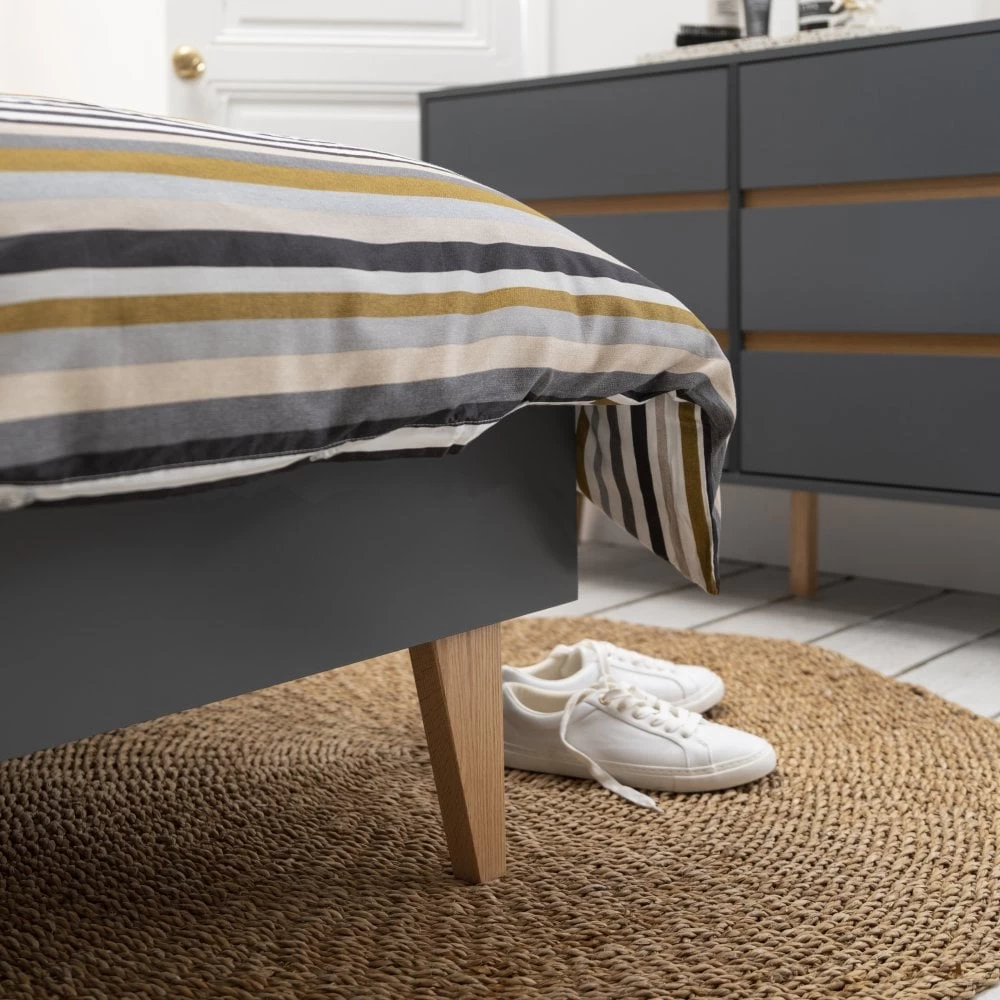 A beautiful, chic single bed, the Otto adds elegance to any bedroom. Cool and contemporary in style, the solid pine bed is finished in an uplifting grey shade and features dark pine detailing for a subtle contrast. Simple, clean lines and a minimal silhouette promote a neat and serene bedroom, making it a stylish choice for guest rooms or older children’s bedrooms. Thanks to its versatile shade and effortless aesthetics, the Otto single bed works with most décor schemes. Be sure to team with matching Otto bedroom furniture for a seamless bedroom style.