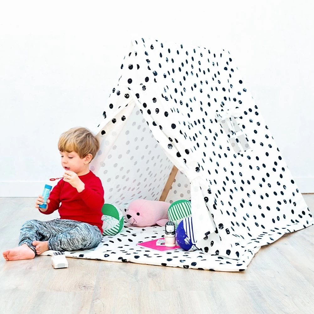 This pretty little camping tent, ideal for hiding, having fun, taking a nap in its little bubble … will soon become the favourite place for children! Easy to assemble and dismantle, it is sold with its storage bag.Â