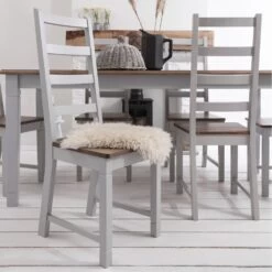 Canterbury Dining Table 180cm With 6 Chairs In Grey And Dark Pine