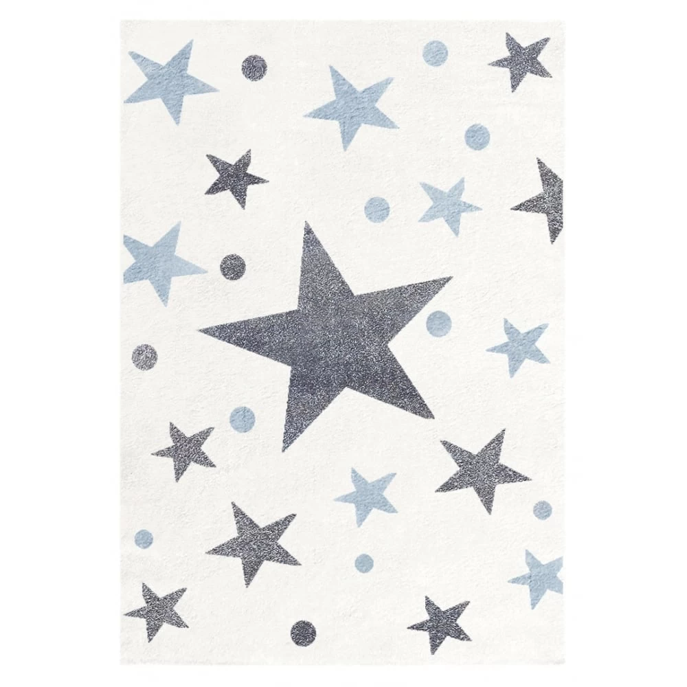 Rug With Stars In Cream And Blue 150cm X 80cm