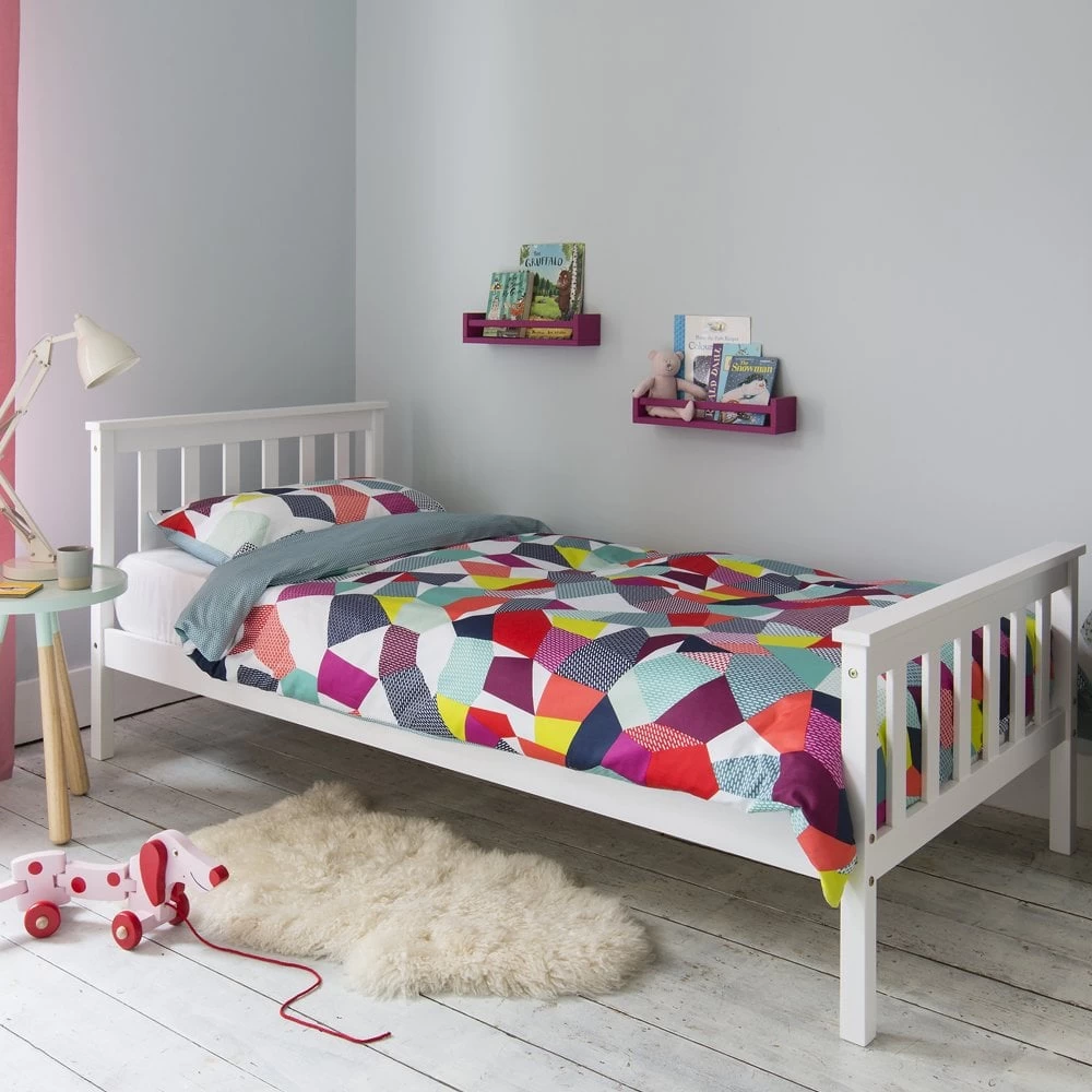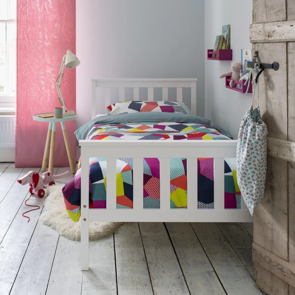 Our solid wood shaker style single bed makes a charming addition to any bedroom with it’s simple, timeless lines and creates a beautiful focal point for your bedroom. Finished in white, the stylish Dorset will compliment many interiors; accessories with accents of blue for a relaxing, coastal look or team with shades of grey for a sophisticated modern feel.To match the look pair with the bedside table, and why not add a trundle underneath for an extra pull out guest bed!