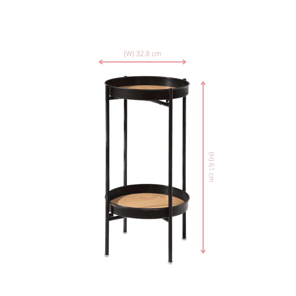Punctuate your living room with the sleek Solna. This jet black side table is simple yet striking thanks to its sharp, minimal design. Wooden elements create contrast and depth, whilst its two-tier set-up offers ample space to display arty ornaments. Functional, as well as stylish, Solna is an elegant armchair companion making it the perfect space to pop a cup of tea alongside your latest reading book. Available in small and large sizes to suit any home, this chic side table promises to add edge wherever it is placed.