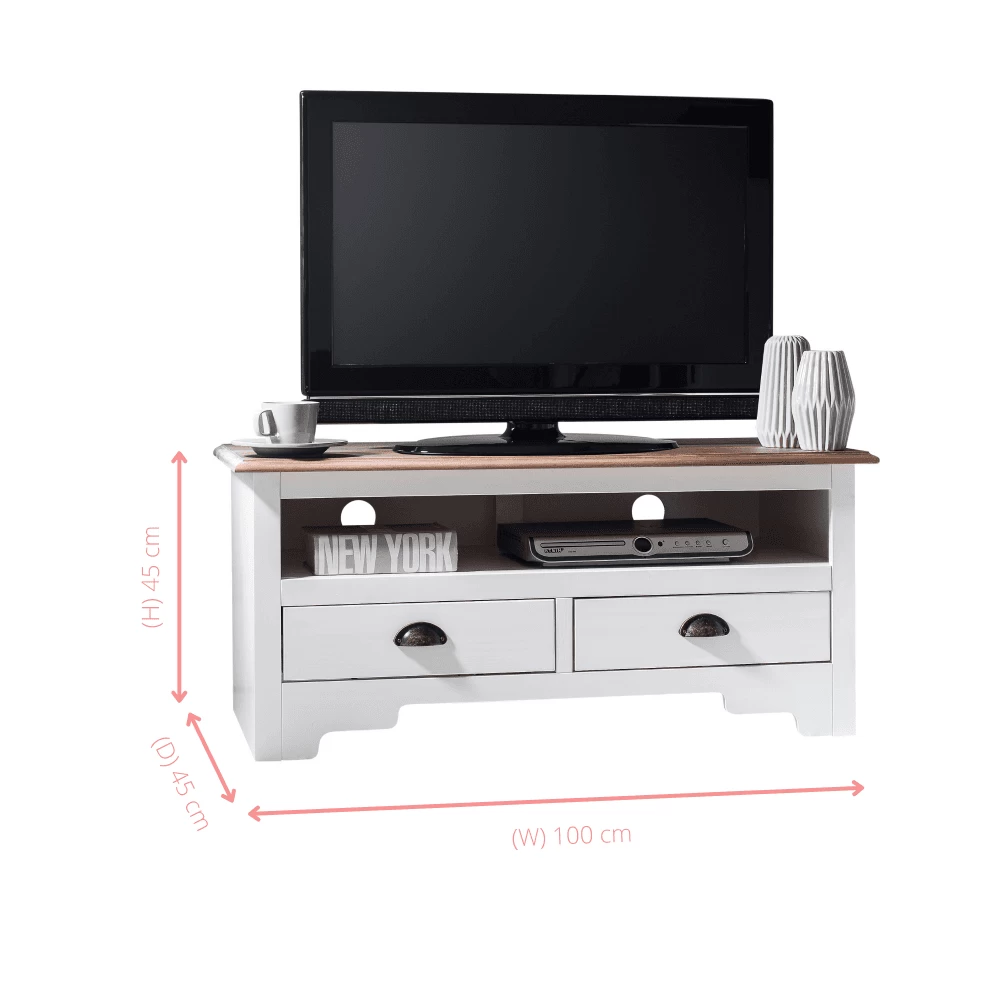TV Unit Canterbury In White And Dark Pine TV Cabinet