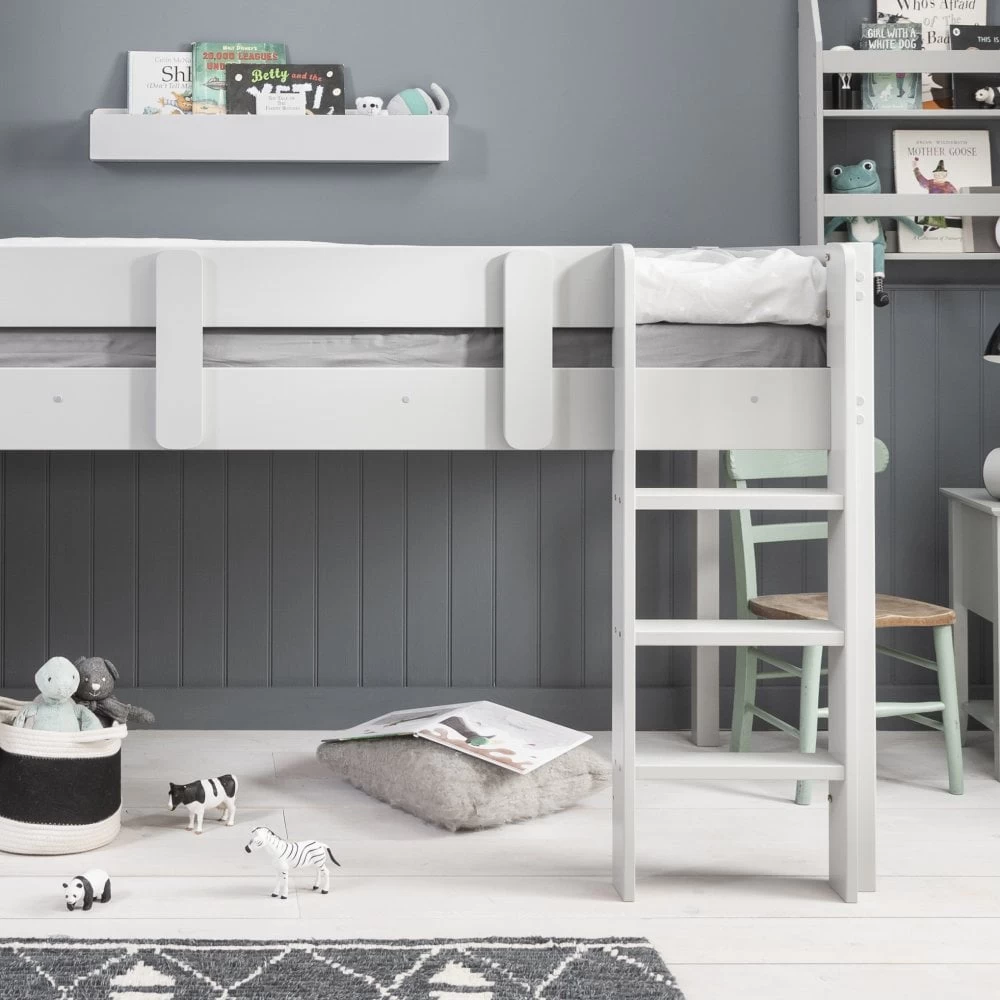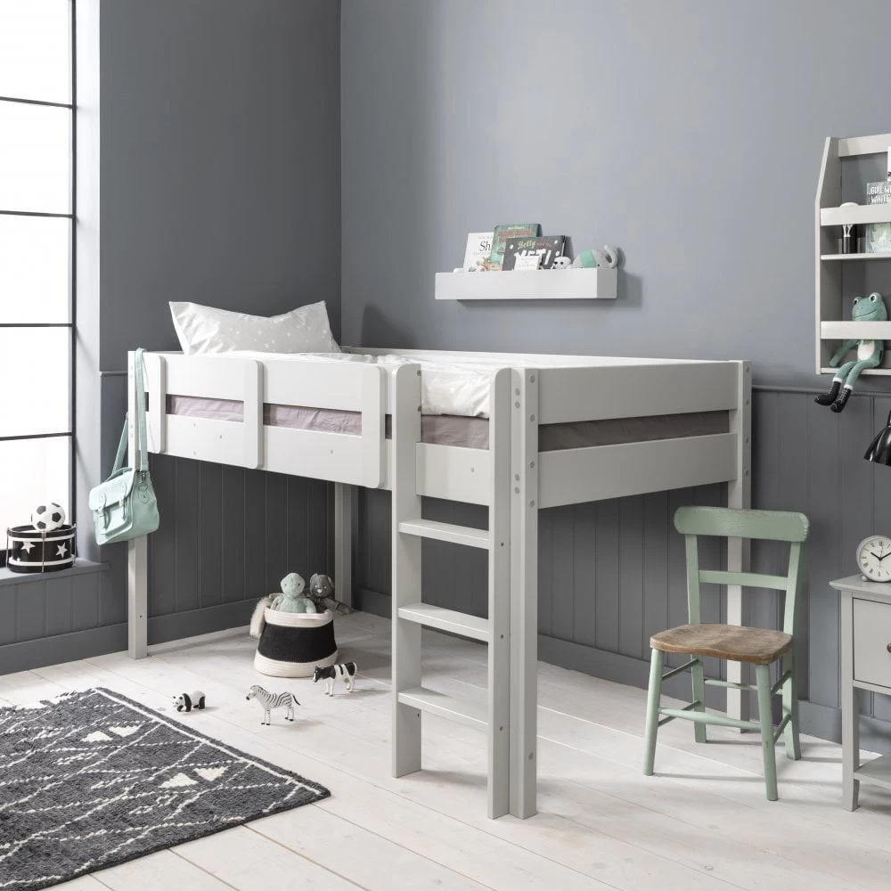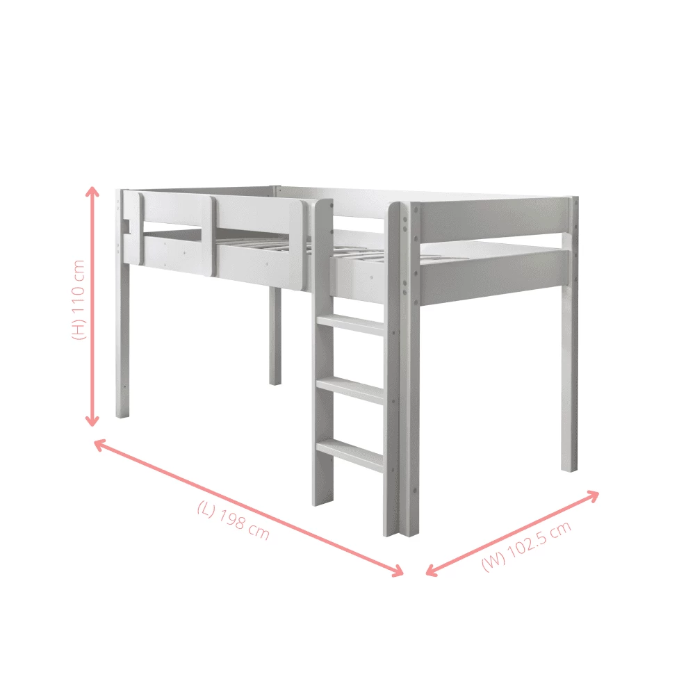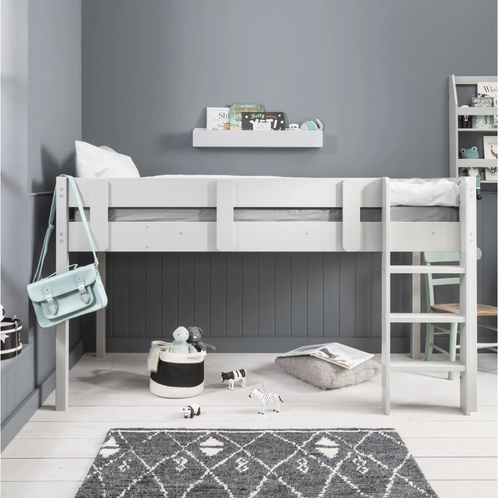Sleek and modern, our Una Mid-sleeper cabin bed is a stylish space-saver for your child’s room. Its minimal silhouette and clean lines create a neat and contemporary feel, whilst the silk grey shade is subtle and chic. Una also has an element of fun thanks to its mid-sleeper design. Kids love sleeping up high and climbing the ladder up to bed is sure to excite them! Plus, the underneath area is brilliant for creating a cool den, storing toys or can even be transformed into extra sleeping space for sleepovers. Versatile and practical, as well as simple and elegant, Una is essential for modern bedrooms.Â